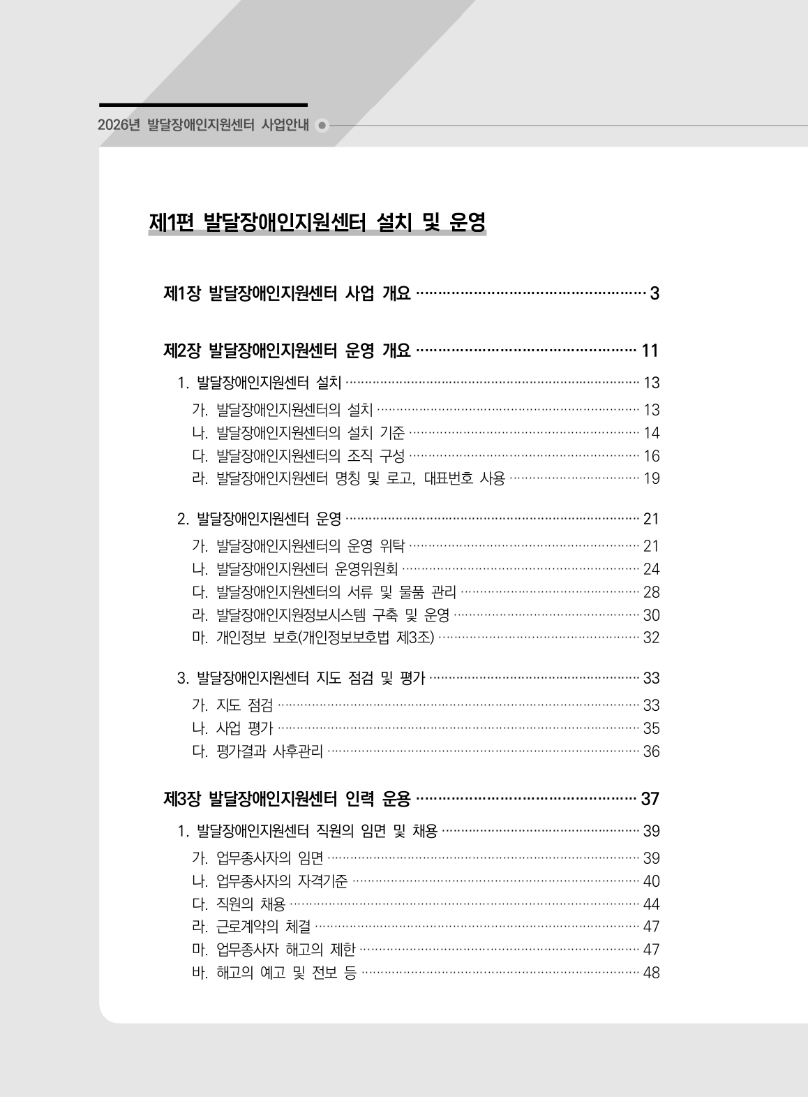 2026년 발달장애인지원센터 사업안내 정책/사업